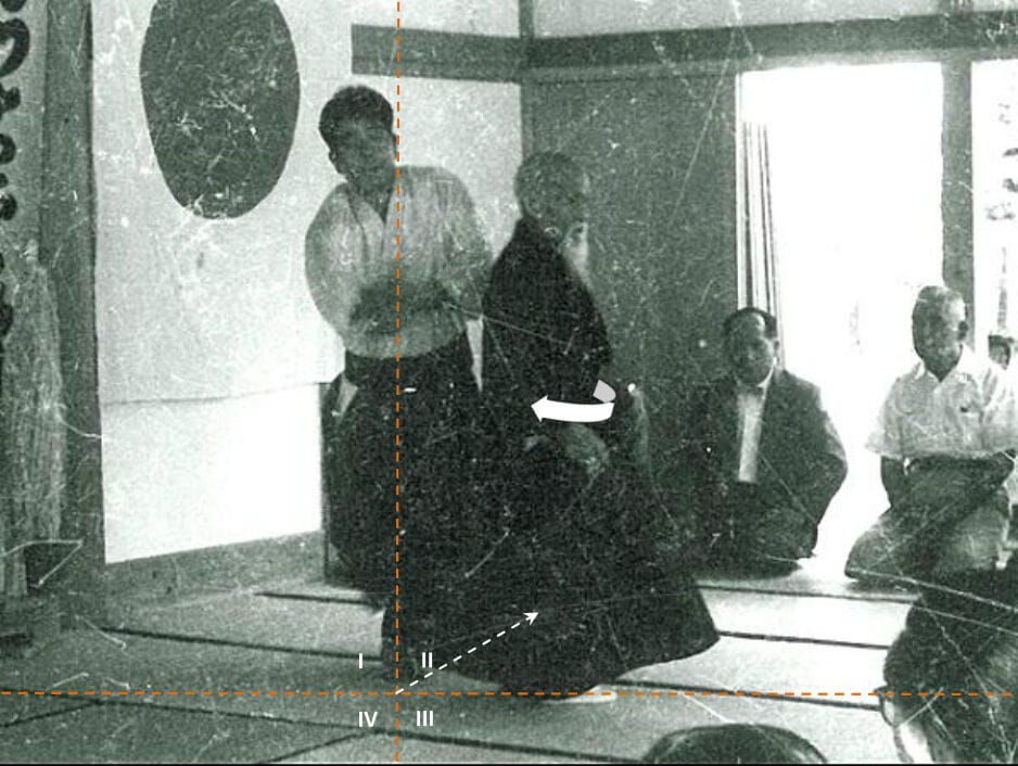 თუკი უზადო ლოგიკის გამოა, რომ ოსტატმა უეშიბამ არ დაასურათა ირიმი-ტენკას პრინციპი ბუდოს მე-11 გვერდზე, თავს უფლებას მივცემ — და თან უდიდესი მოწიწებით — მე დავასურათო აქ ეს და, ცხადია, ამისთვის გამოვიყენო ტექნიკა, რომელიც საუკეთესოდ განასახიერებს ირიმის პრინციპს, როგორც ჩვენ ეს ერთხელ უკვე ვნახეთ: ირიმი ნაგე. ამ მიყოლებით გადაღებულ სურათებზე ვხედავთ, როგორ შედის ო-სენსეი მარცხენა ფეხით (ირიმი), რასაც მყისიერად მოჰყვება უკანა, მარჯვენა ფეხის 180°-იანი ტრიალი წინა ფეხის გარშემო (ტაი ნო ჰენკა):